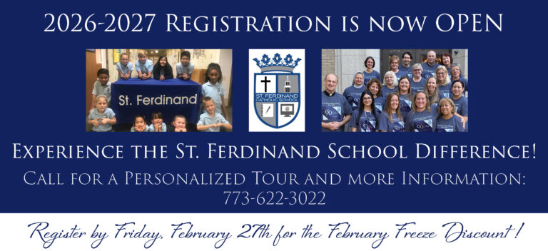 Saint Ferdinand School 3131 N Mason Ave Chicago IL 60634 773-622-3022 school@saintferdinand,org