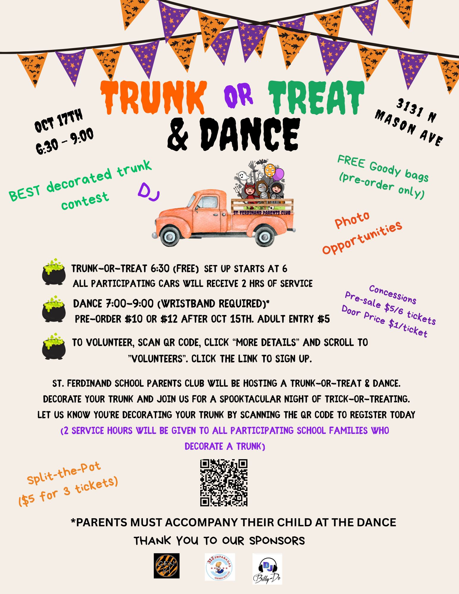 Save the Date: Trunk or Treat and Dance; October 17th – more info to follow
