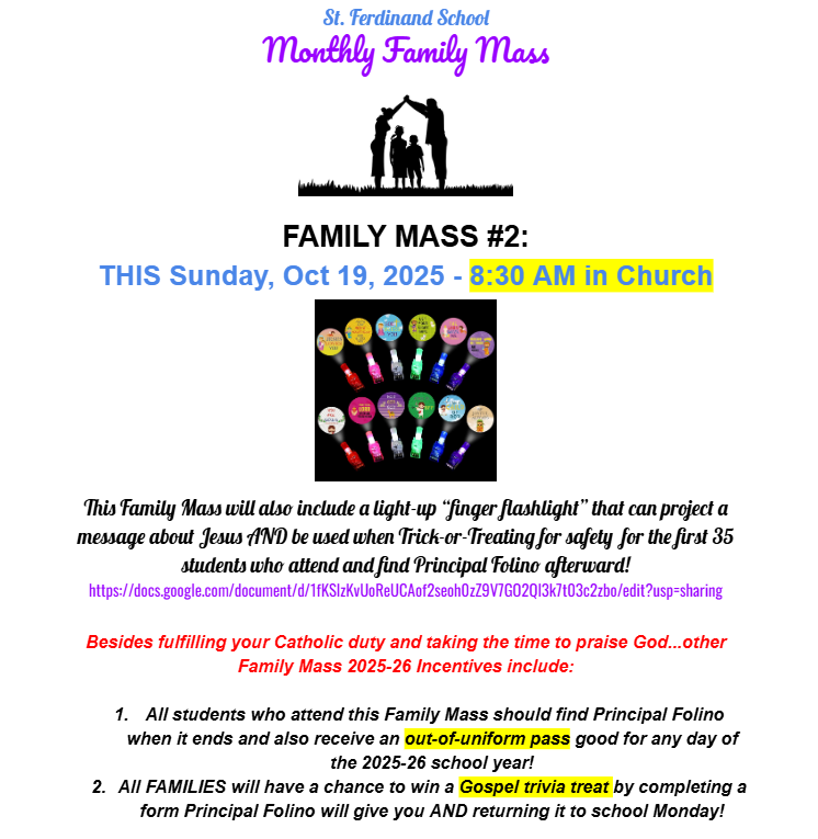 We want to keep our school families informed of the happenings of St. Ferdinand School. Each Thursday, our weekly newsletter, as well as necessary forms, will be posted to this section of the website.
